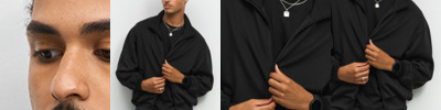Waterproof zip-through collar with chin guard and zip pull. Mesh inner and back vent for breathability. Black colour recycled backing. Waterproof welded seams. Soft and supple feel fabric. Integral drawcord hood. Reflective wristbands. Inner storm flap. Underarm eyelets. Elasticated cuff. Longer length. Zipped pockets. Drawcord hem. Hang loop. Matches R916X trousers.